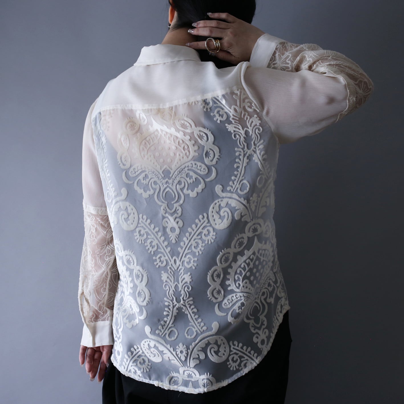 "CHICO'S DESING"よりホワイトオンリーのシースルーベース、フェイクスエードの立体的に浮き出た柄、異素材切り替えの異なる透け感と加点要素の多すぎるスペシャルピースきました✌︎