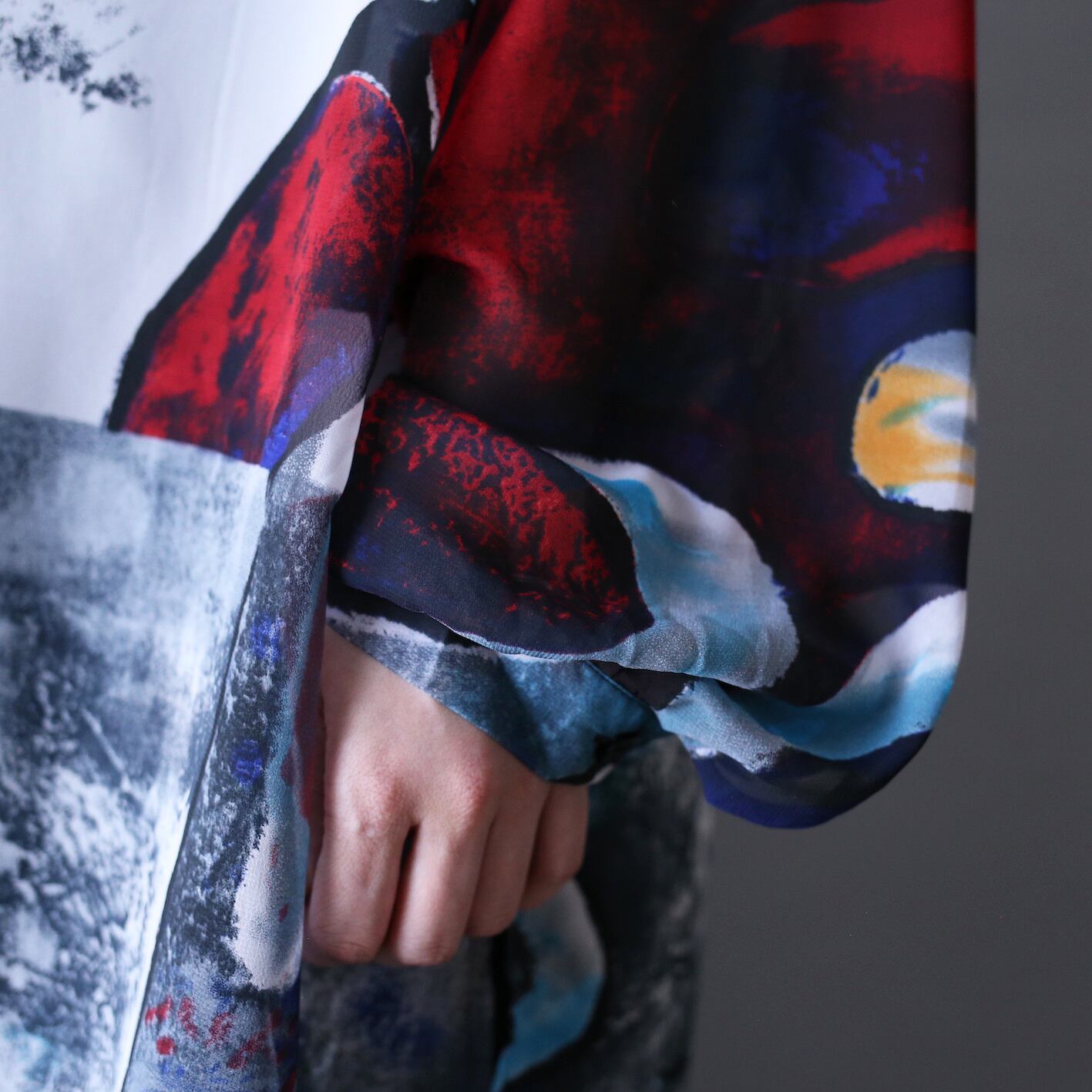 リアルに描かれたギャラクシー柄×ドス黒い赤のピカソチックな抽象柄、このミスマッチな世界観が他にはない禍々しさを演出。