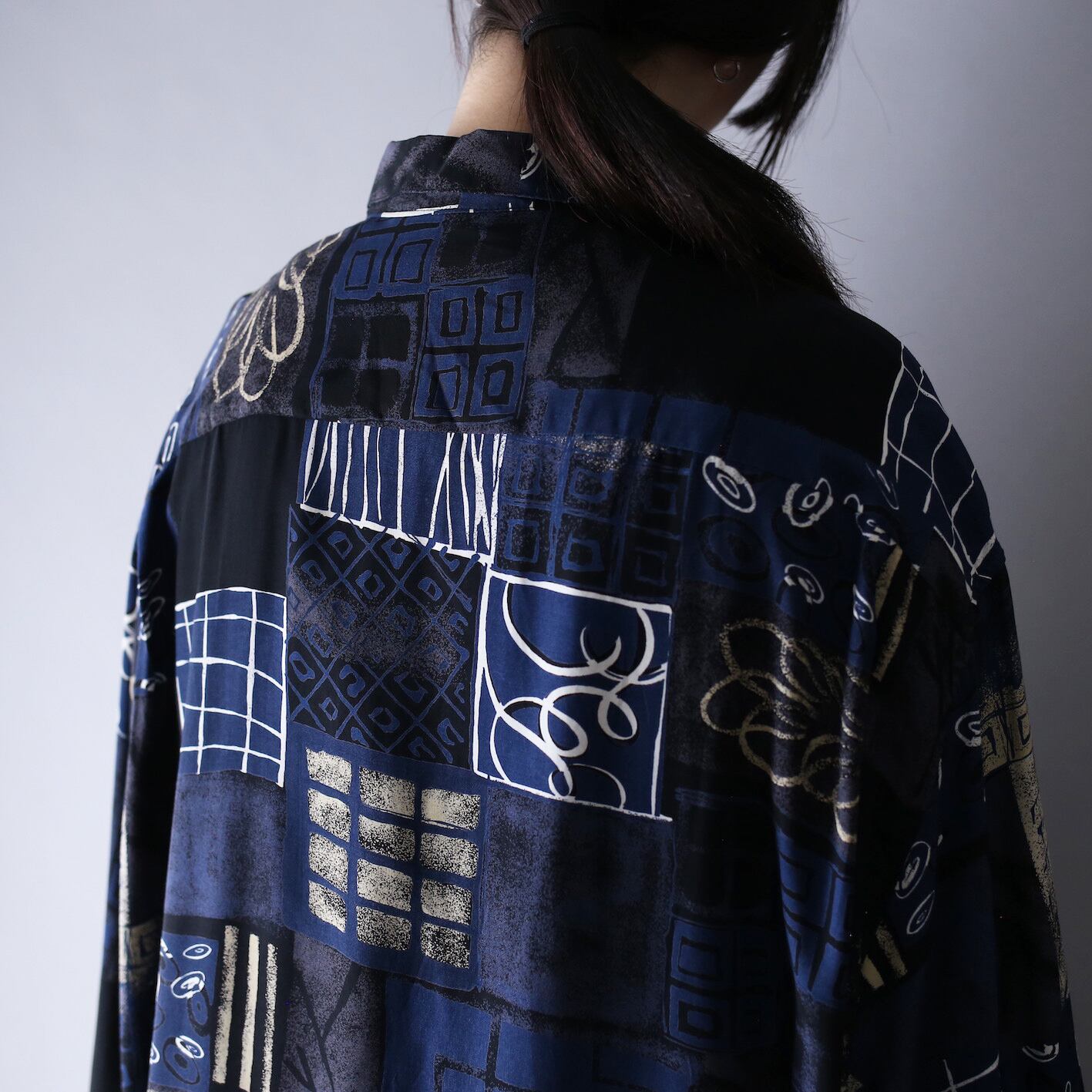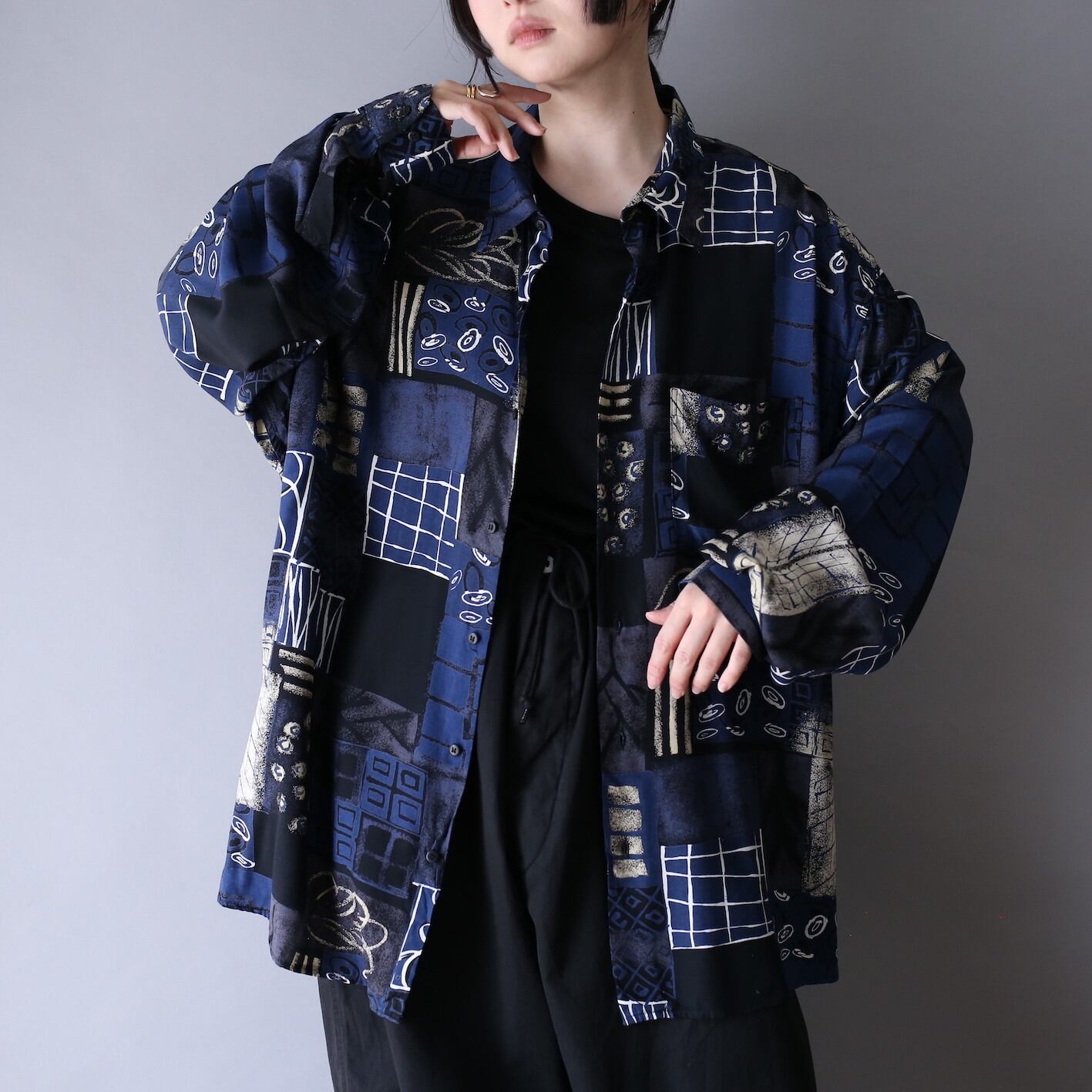 古着の王道である総柄シャツより、サイケデリックな配色に抽象的なパネルパターンと”唯一無二感”溢れるオーバーサイズシャツお持ちしました。