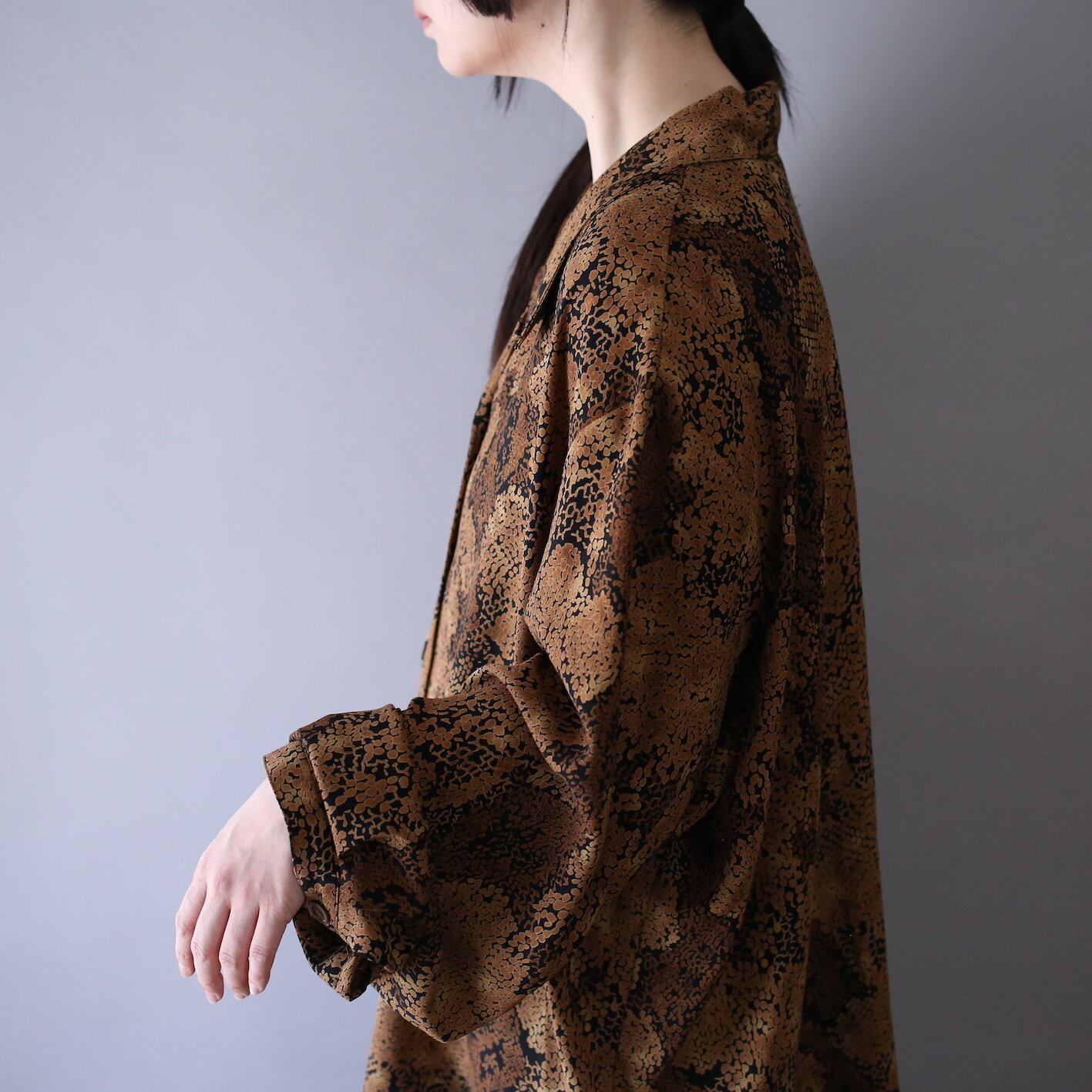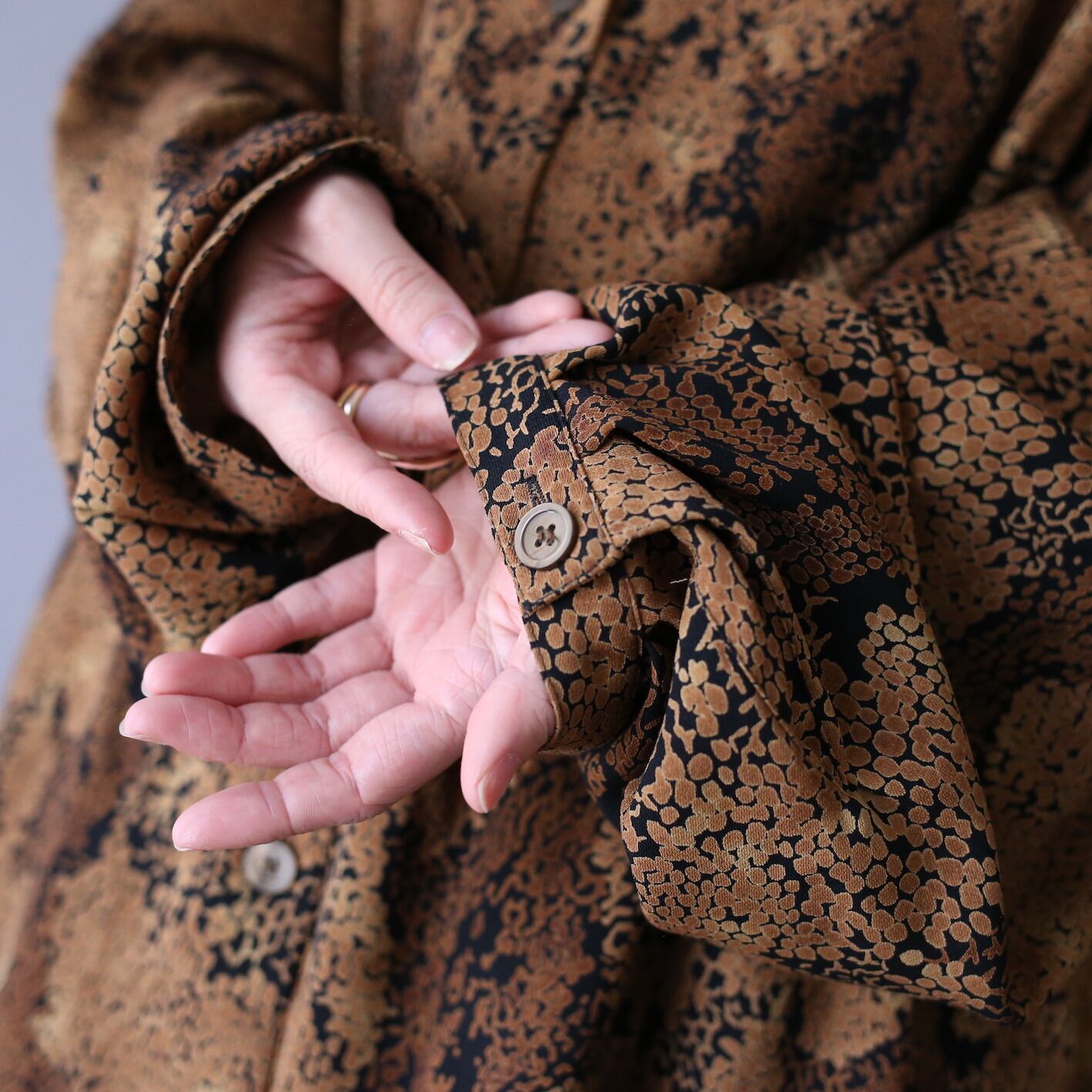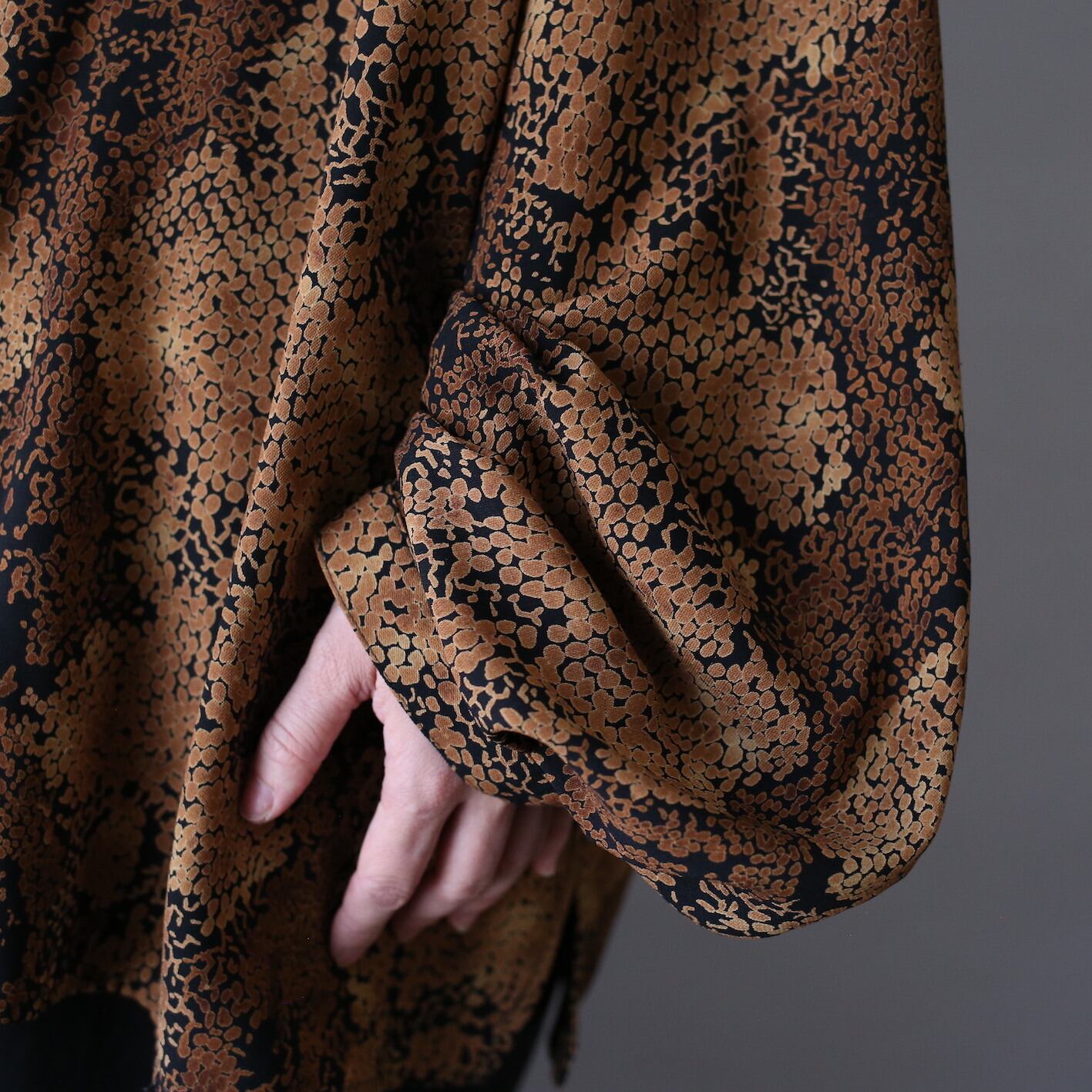 解像度粗めのモザイク柄、ブラウンベースの配色と相まって”クロコダイル”の皮を纏っているかのようなエレガントムードを演出。