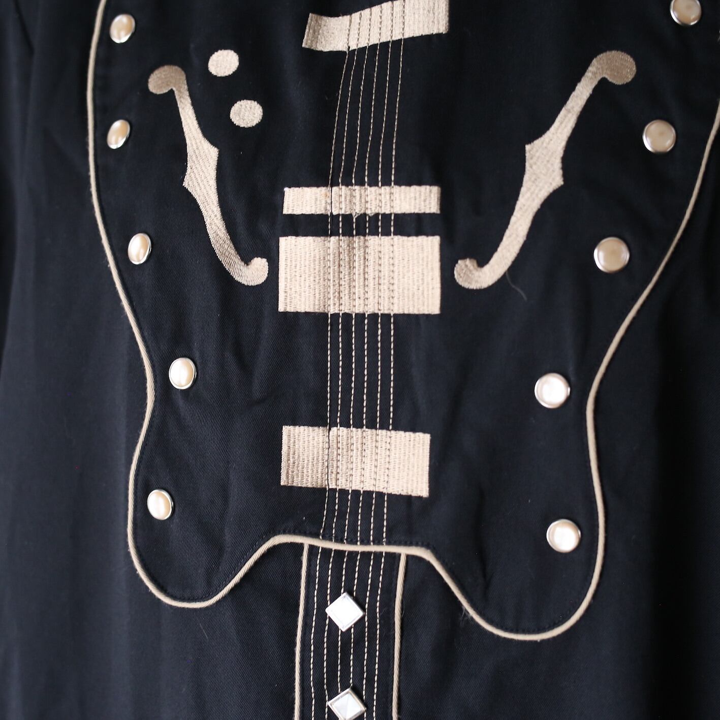 こんなの見たことありません、フロントにデカデカと配された大迫力の”ギター刺繍”とダイス型のスナップボタンが”唯一無二感”ダダ漏れの貴重〜なスペシャルピースをご紹介。