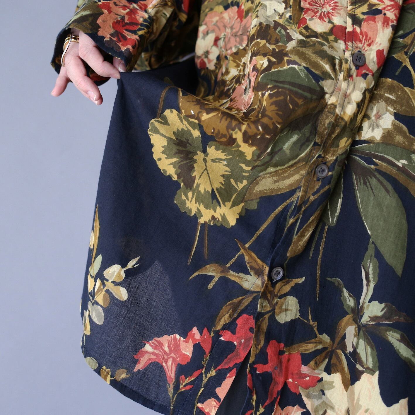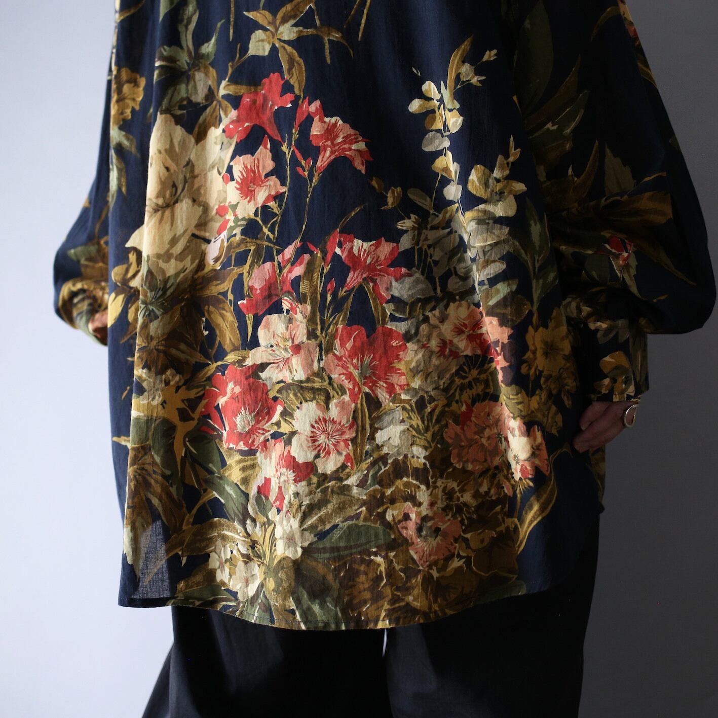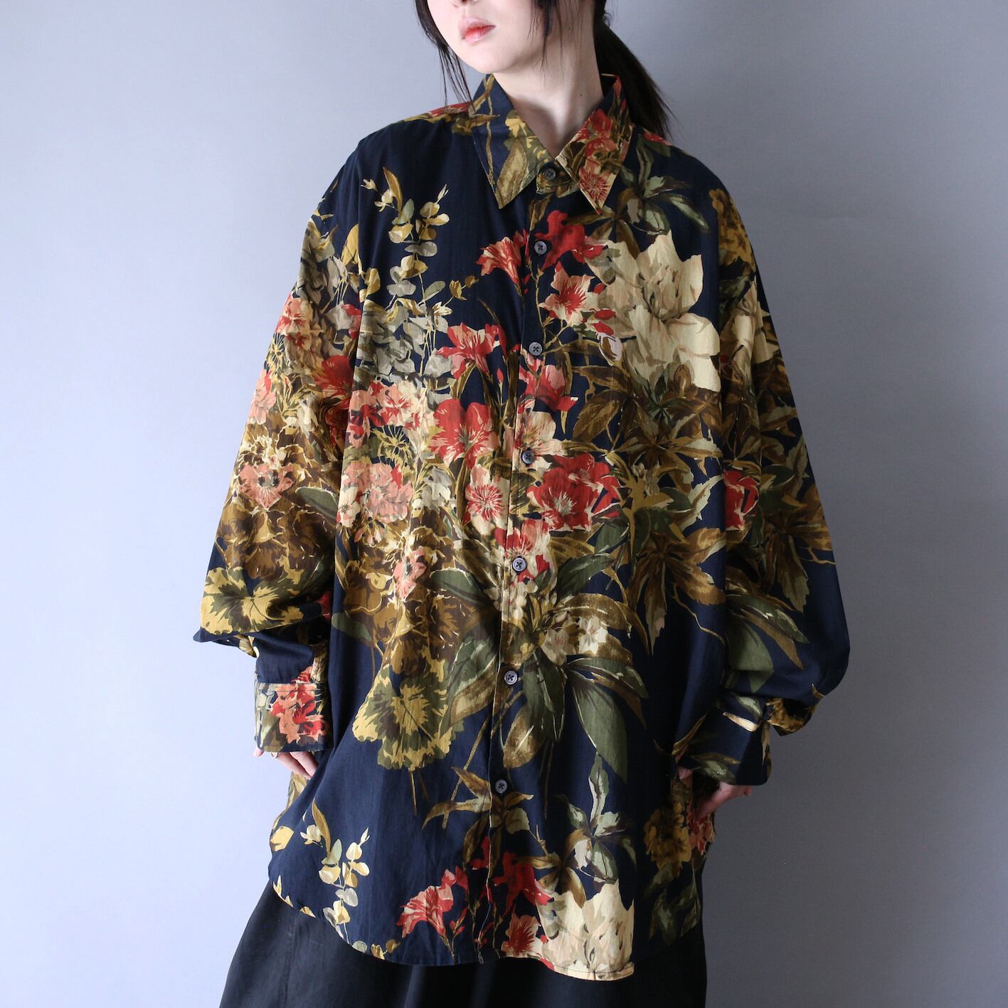 当店十八番のモード映えする花柄シャツ、今回は今までとは一味違い、超絶大判な花柄が見応え満点の”ラグジュアリー感”をムンムンに放つ極上アート柄シャツきました。