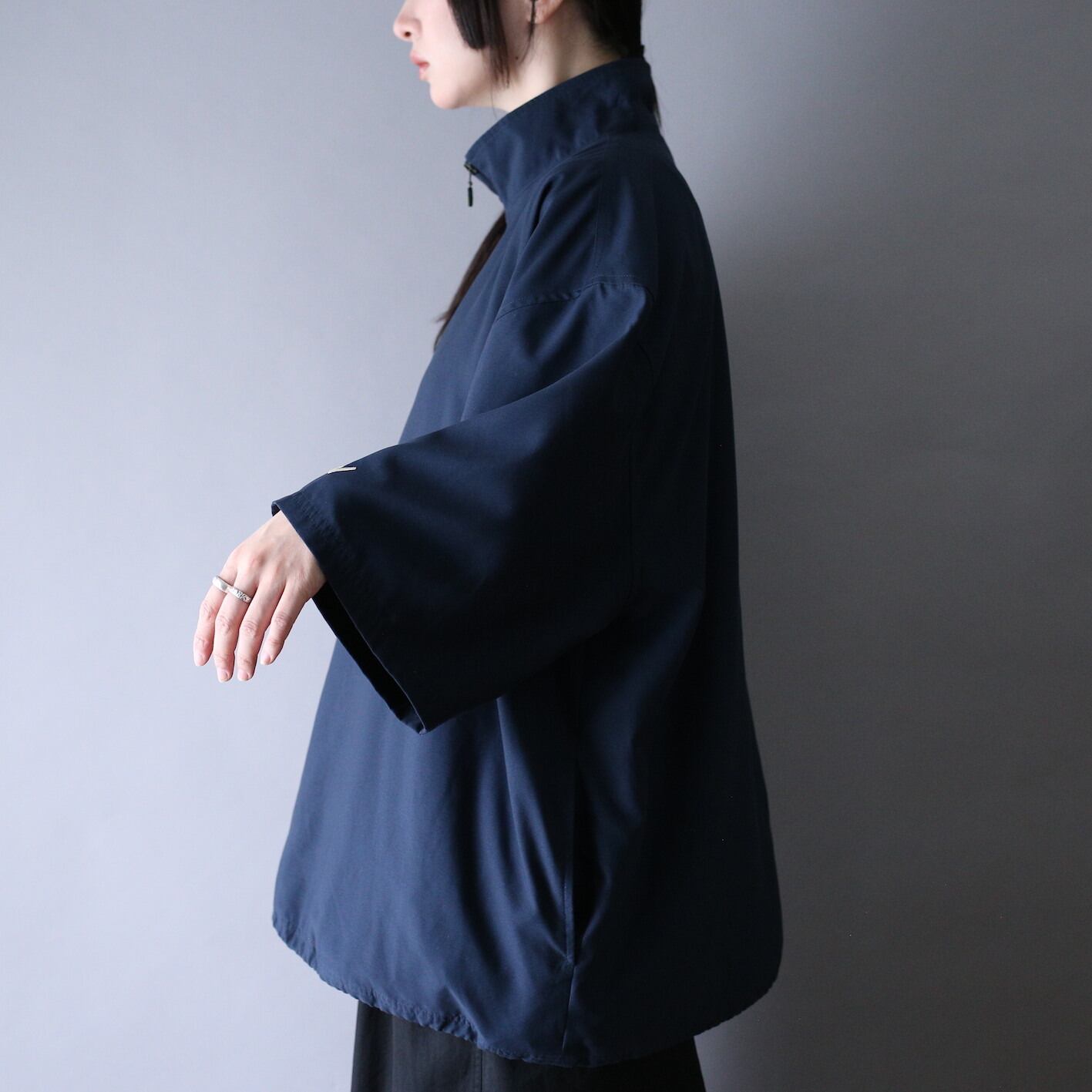 テックノリの良いシャカシャカ素材にサイズ表記XLのオーバーサイズ、着丈に対して身幅にもたっぷりと生地を使ったBOX丈、肘までずっぷりと覆い隠すほどのロングな袖丈と1度着たら病みつきになる極上シルエット◎