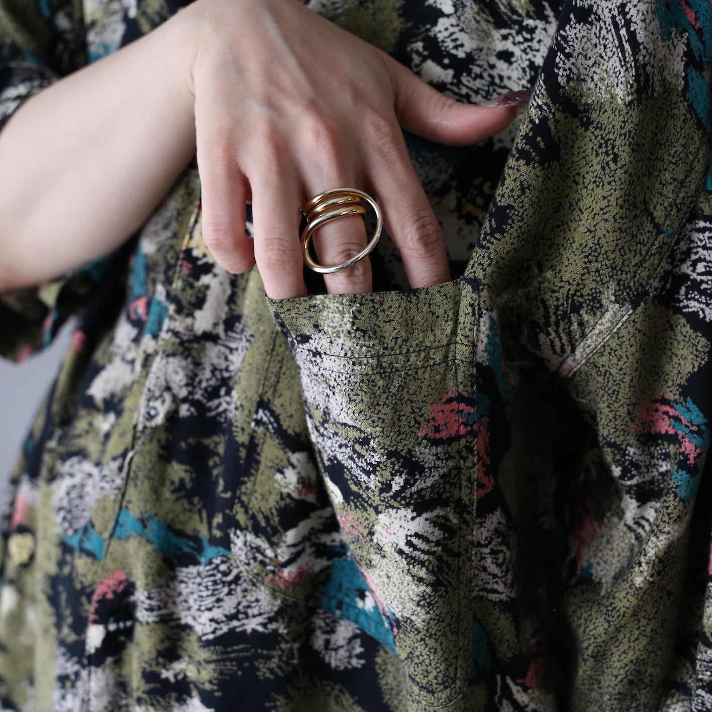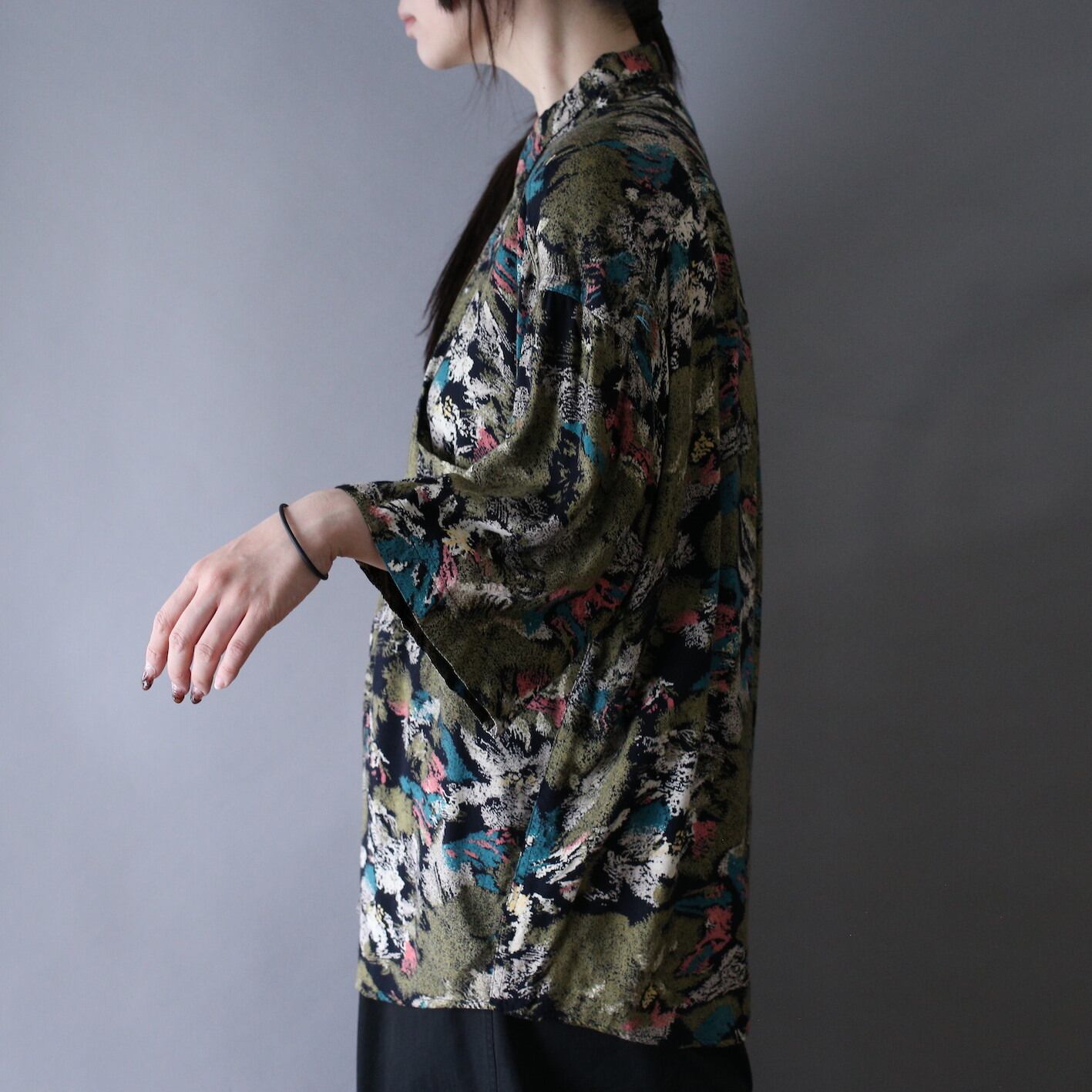 モスグリーンをベースに青やピンク、黒などの個性的な差し色にグーチらしい独特な抽象柄とファッションセンスの輝く至高の1枚。
