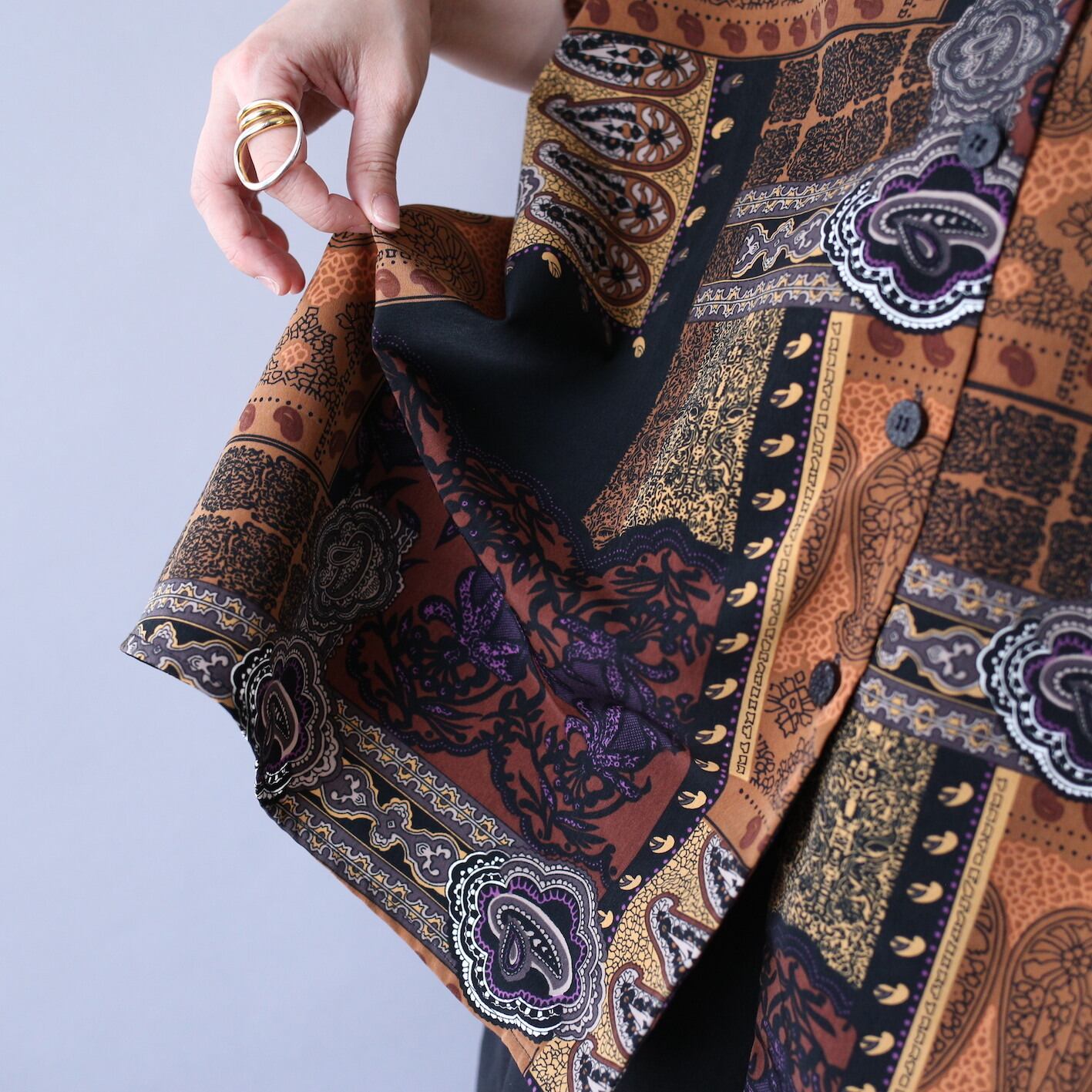 生地はしっとりと艶感のある上質なポリを使用、ペイズリーの美しさを最大限に引き出し落ち感や肌触りも最高の着心地◎