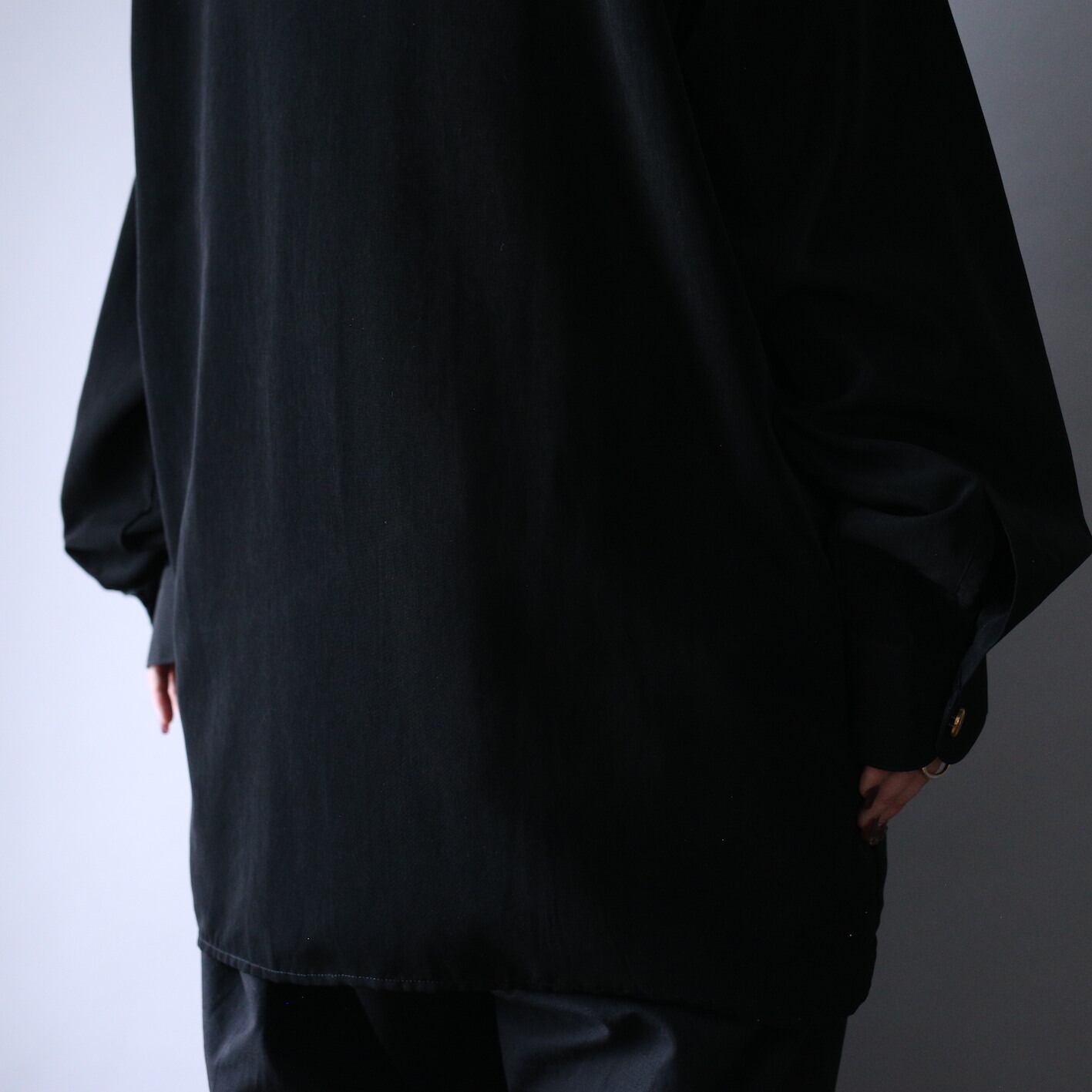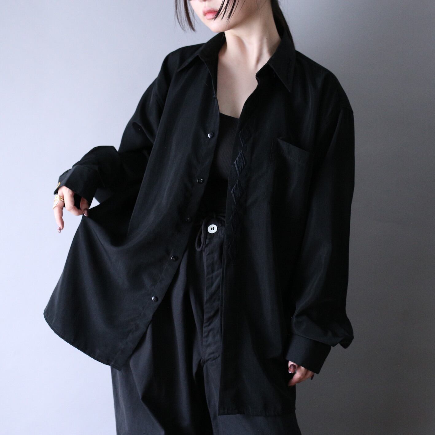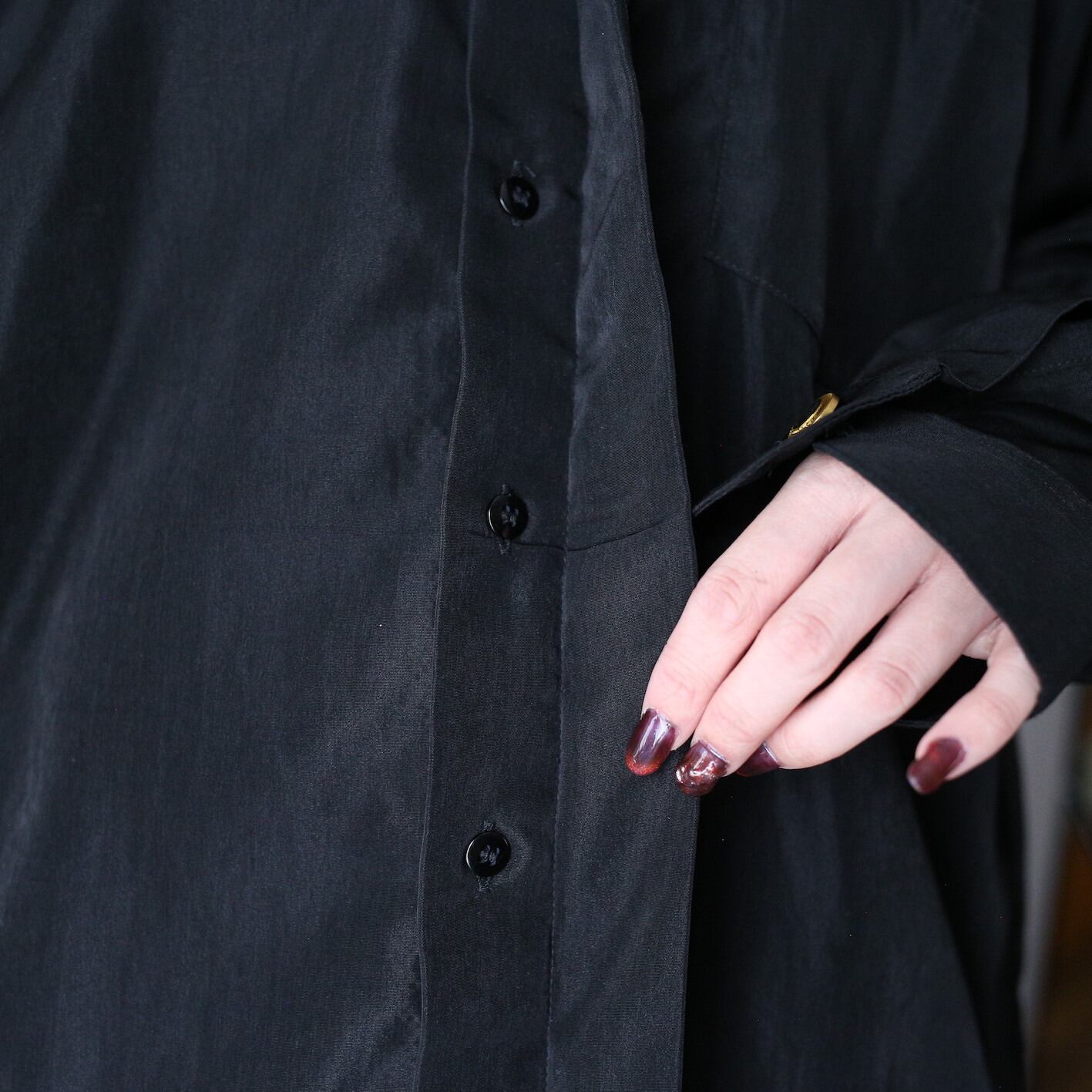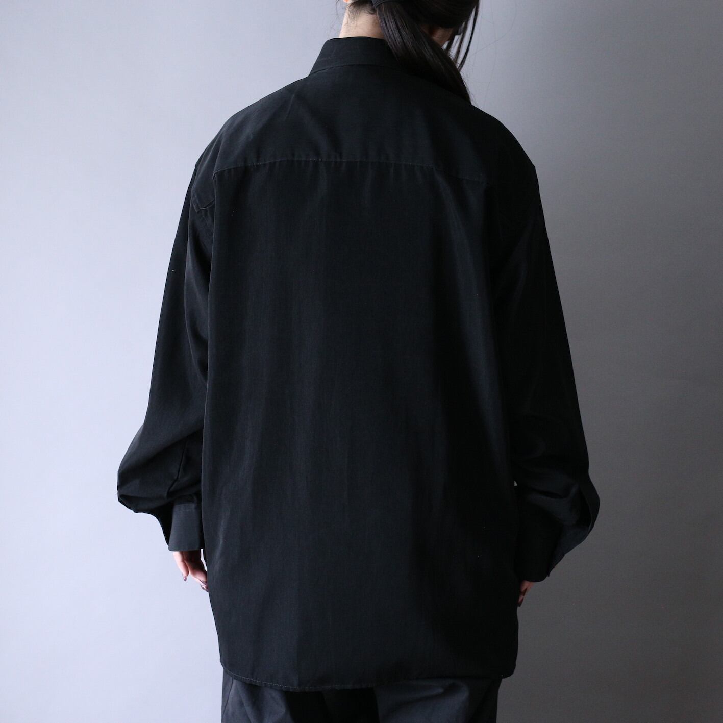 意外と見つからないモード映えする古着シャツ、全てを”黒一色”に統一し洗練されたムードを放つ極上〜の1枚お持ちしました。
