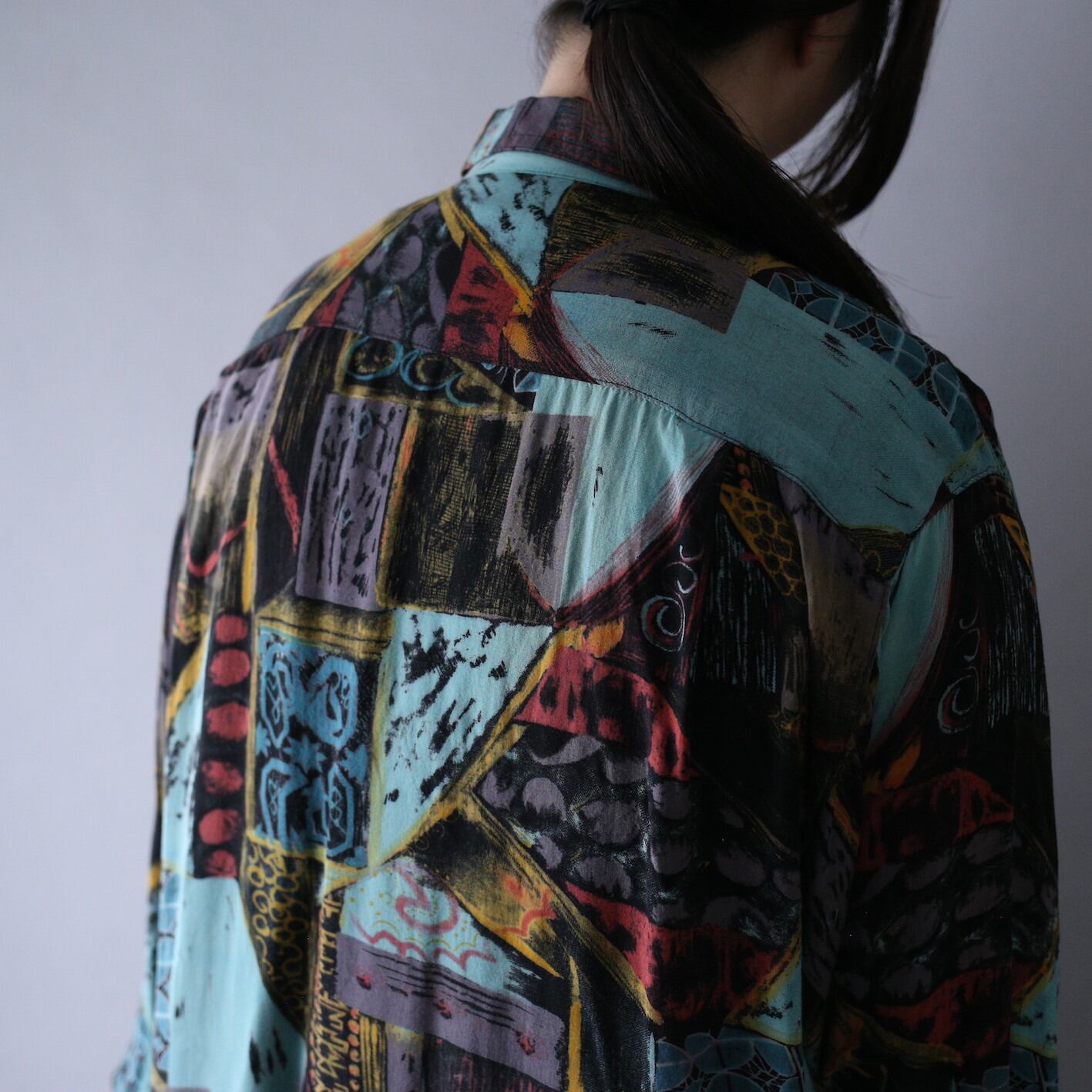 配色と柄の相性が最高すぎます、当店ではダークな柄シャツを数多く仕入れて来ましたがその中でもトップクラスに入る至高の逸品かと。気になる方は是非◎