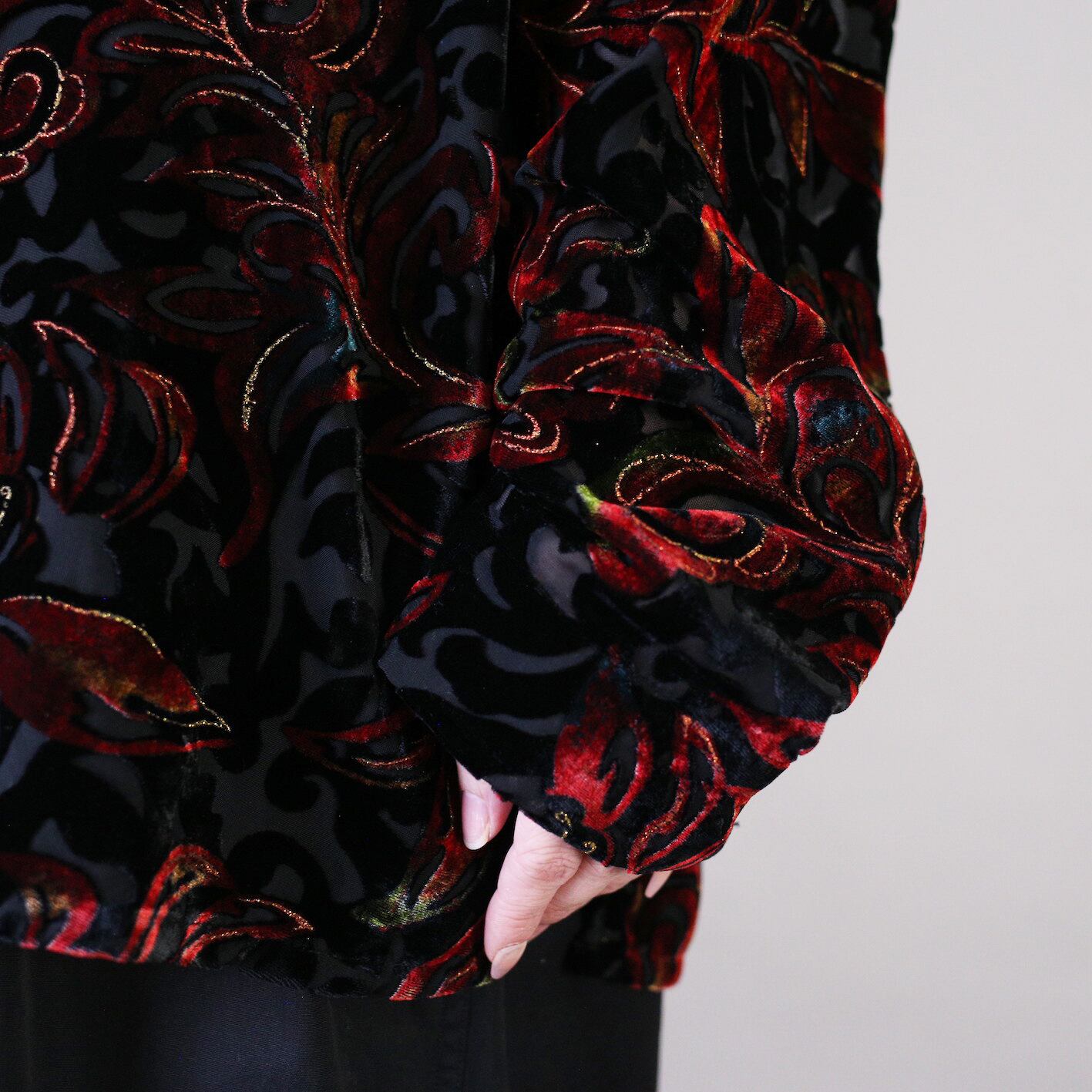 シアー素材に柄部分のみベロアを使用しエレガントで豪華爛漫な佇まいを発揮、さらにサイズもオーバーに仕上がったスペシャルピースお持ちしました。