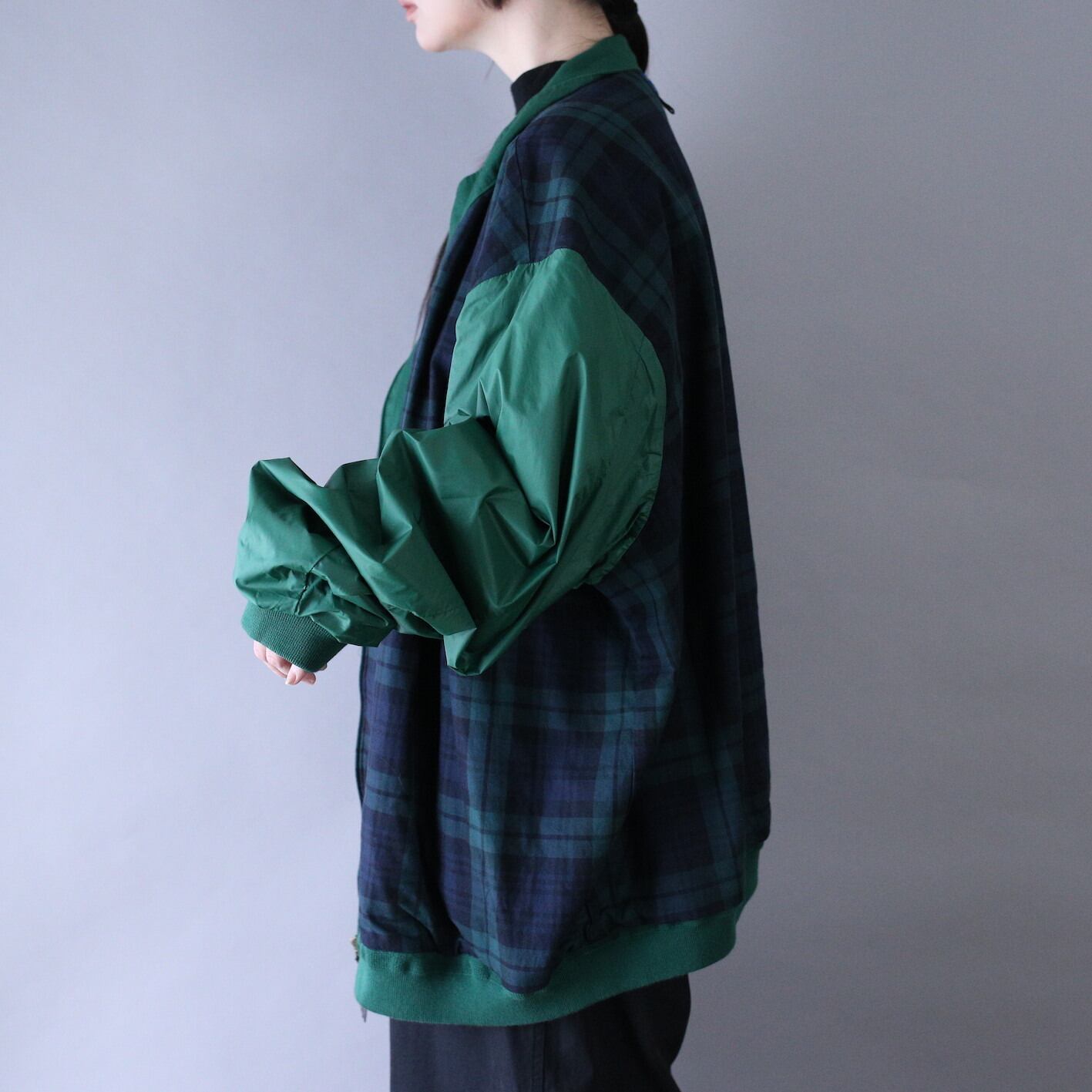最大の魅力は"裏地でも着られる"というヤバさ◎襟は深緑、身頃はチェック柄とこの切り替えがエグいほどに格好良いですし、ポケットもさりげなく付いているのも嬉しいポイント◎