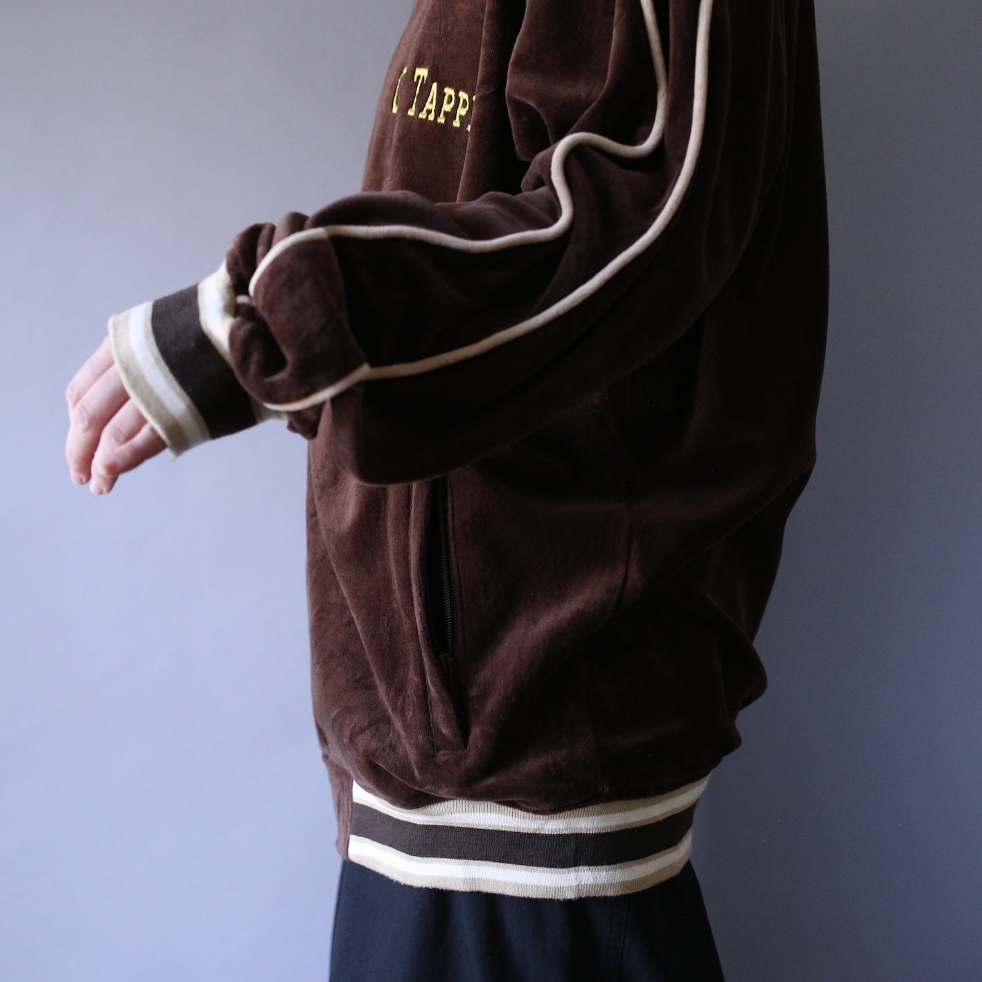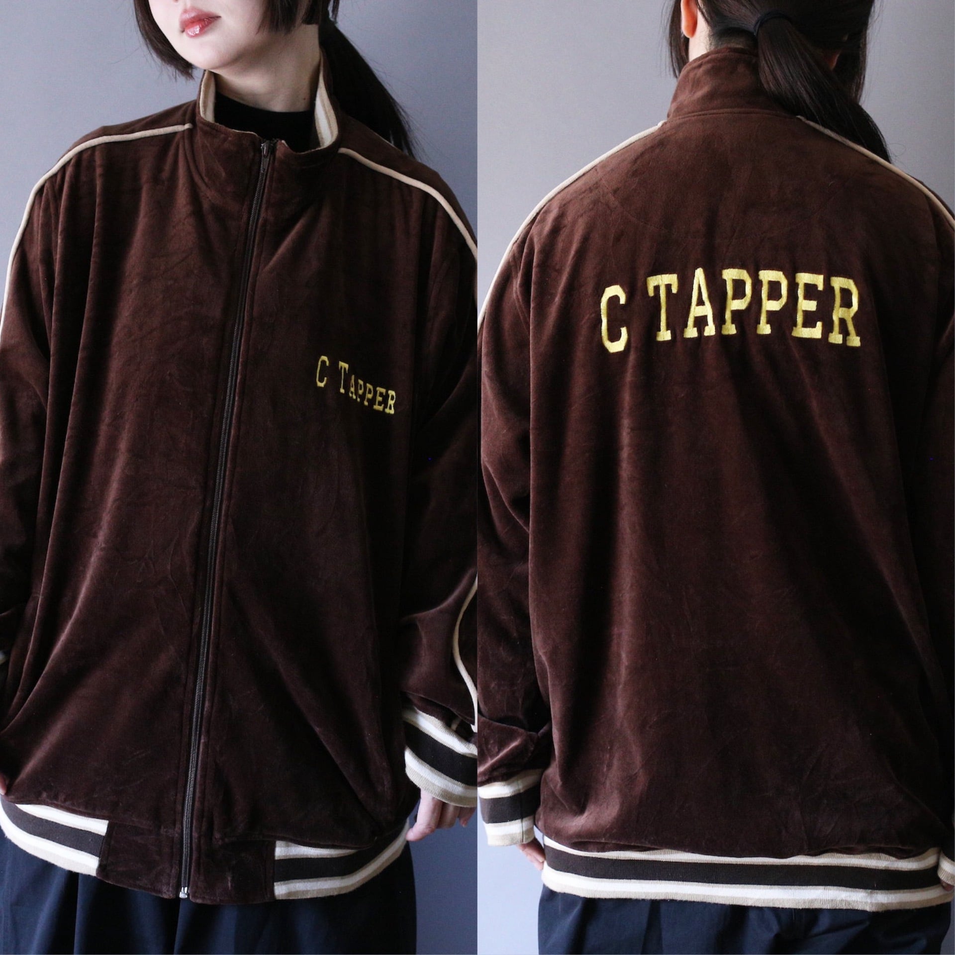 店頭、オンライン共に入荷直後に旅立っていく当店屈指の人気ドコロ"ベロアトラックジャケット"、今回は”刺繍デザイン×パイピング”と個性満点の逸品お持ちしました